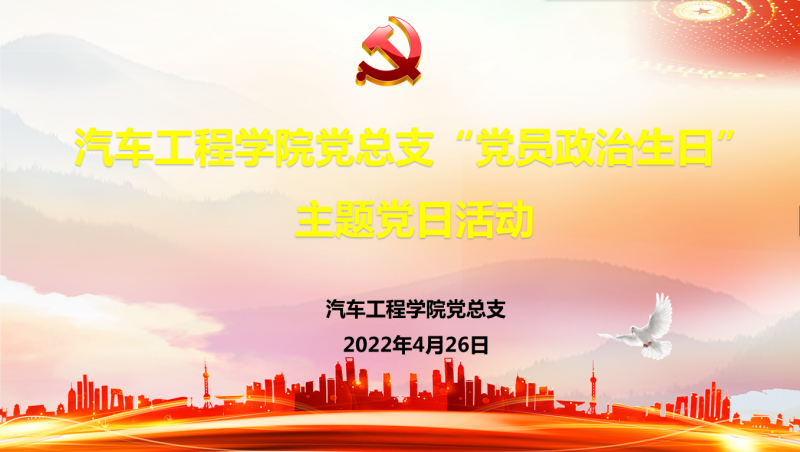 (汽车工程学院 讯 梁业灿、王杰身/文)贯彻落实开展党史学习教育常态化,充分发挥党员先锋模范作用。2022年4月26日,汽车工程学院党总支开展了以“过政治生日,强初心使命,显擎力担当”为主题的“党员政治生日”主题党日活动。活动由党总支宣传委员梁业灿同志主持。