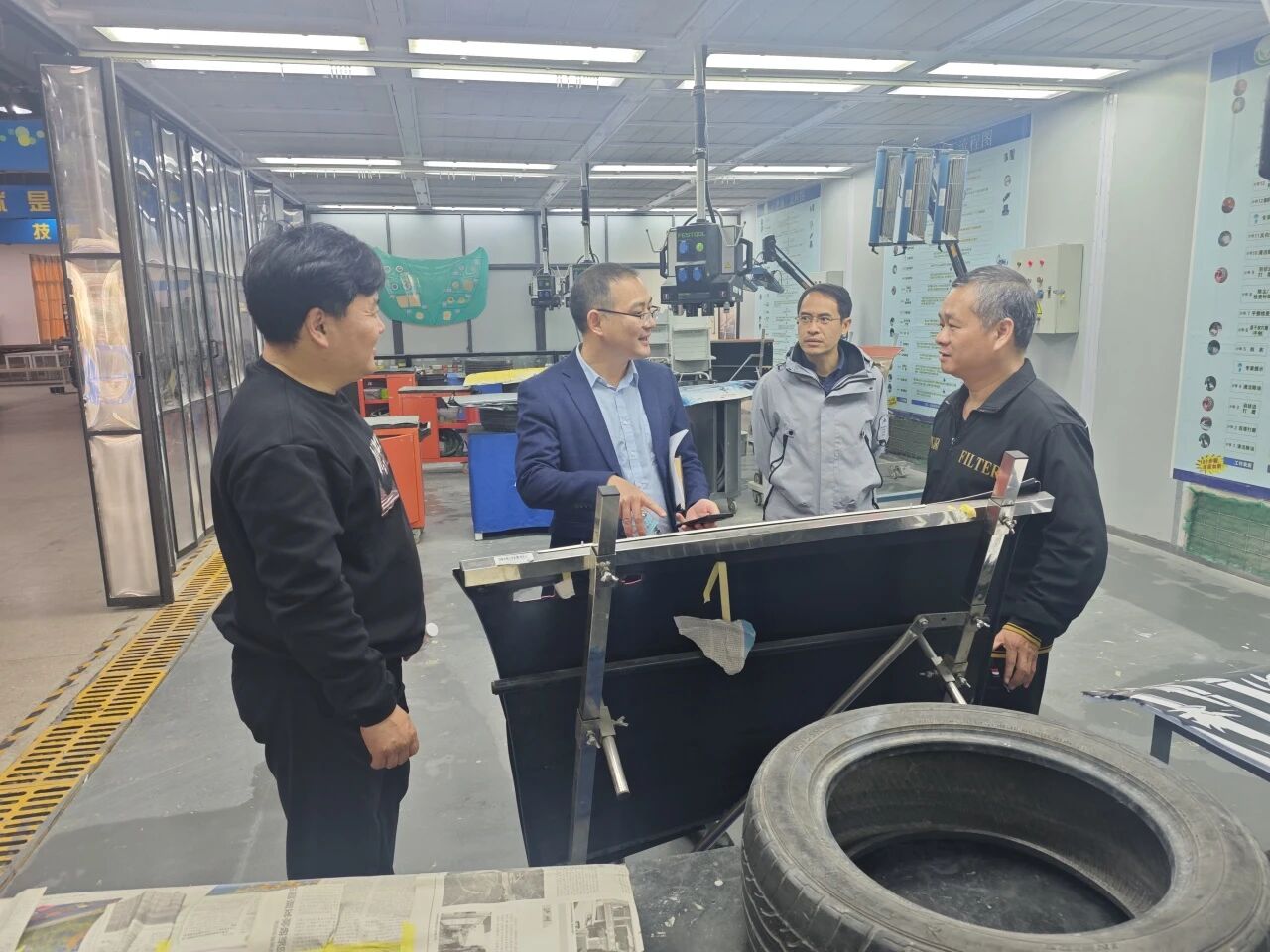 立项喜讯传来,校企双方迅速联动。柳州五菱新能源汽车有限公司技术总监黄好一行专程赴学院,与创新站核心骨干成员围绕博士创新站建设任务、专用车产教融合实践中心搭建、车路协同交通运输专用车研发中心建设等重点建设任务展开深度研讨。在调研学院实训基地期间,黄好总监结合企业产业布局与技术需求,对新能源专用车生产线的优化升级、实训场景的实战化改造等提出了一系列建设性意见,为校企后续合作明确了方向、细化了路径。