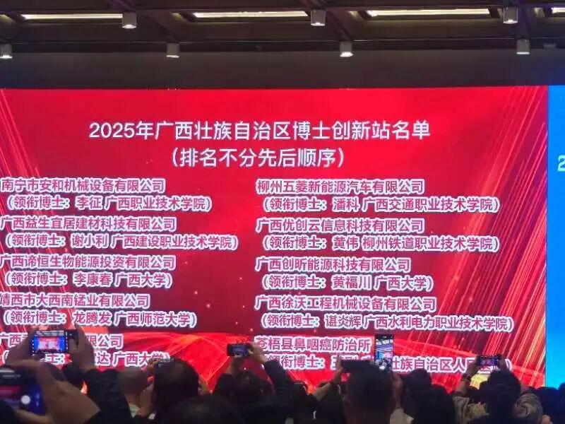 近日,自治区科协、自治区党委统战部、自治区工商联联合公布2025年广西博士创新站立项名单,由我院与柳州五菱新能源汽车有限公司联合申报的博士创新站成功入选。这一重要成果,标志着学院在深化产教融合、推进科技协同创新、培育高素质技术人才等方面迈出了实质性步伐,为交通运输与新能源汽车产业深度融合注入新动能。