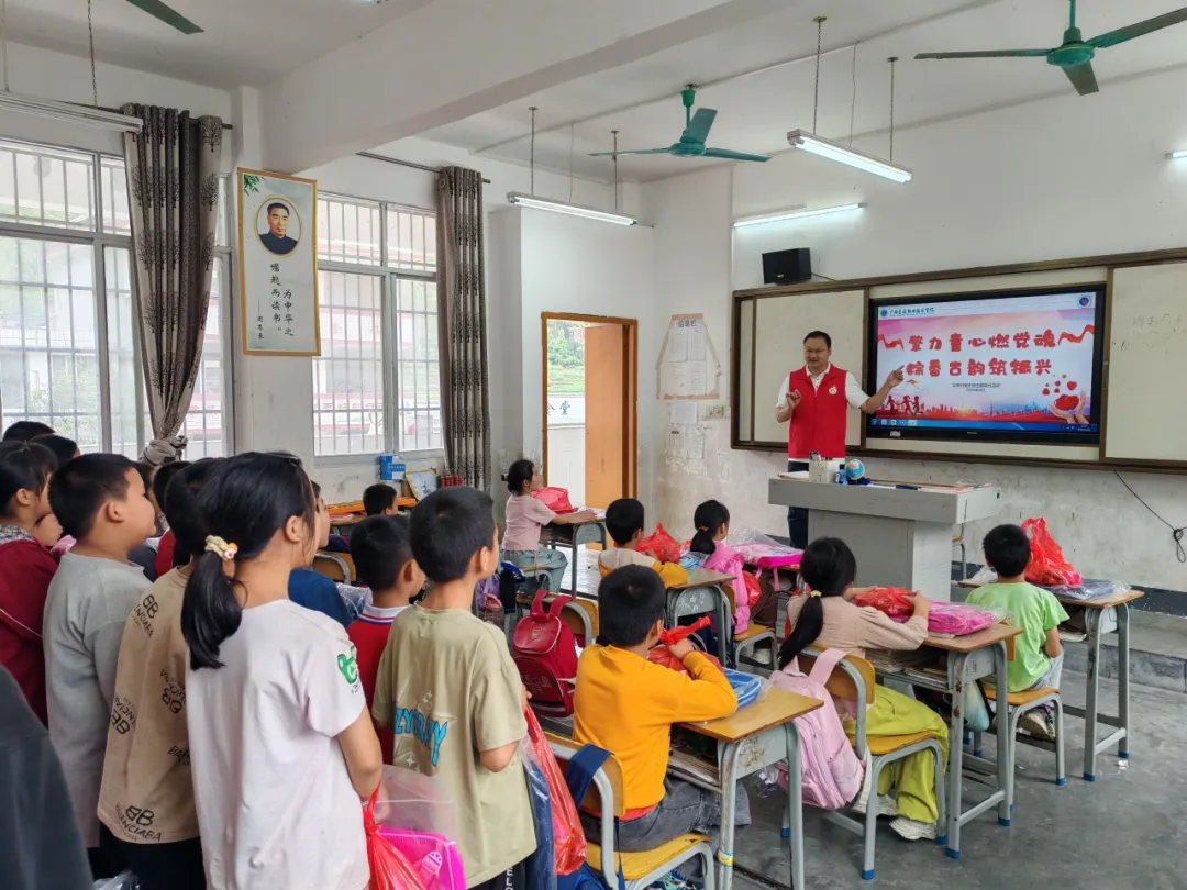 红色教育与文化活动。我院驻村第一书记刘福昌化身“党史宣讲员”,用孩子们听得懂的语言讲述革命故事。从广西农民运动先驱、百色起义领导人韦拔群的英雄壮举到新时代乡村振兴的奋斗篇章,鲜活的叙事让红色精神具象化。“这些故事让孩子们知道,今天的幸福生活来之不易。”刘老师表示。