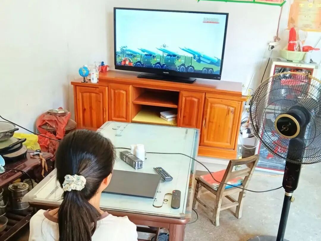 阅兵过程中,整齐划一的方阵、先进精良的武器装备、英姿飒爽的受阅官兵,让师生们深受震撼。