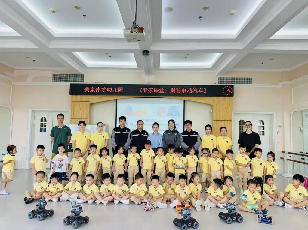2025年10月17日,廖俊生、郑若蕾、王佳奇三位教师带队走进美泉伟才幼儿园,开展了一场趣味十足“大手拉小手”新能源汽车科普研学活动,用专业知识为孩子们打开了一扇通往汽车科技世界的大门。