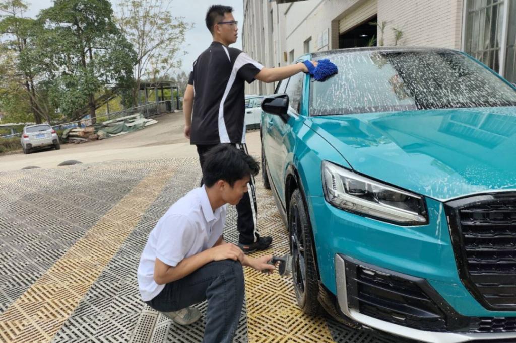 劳动赋能,专业实践锤炼过硬本领。学院充分发挥专业优势,依托6S社团组织开展志愿服务洗车活动。同学们将课堂所学转化为实操技能,在清洗车辆过程中熟悉设备使用、规范操作流程,既服务师生需求,又提升职业素养,在点滴劳动中感悟技能的深刻价值内涵。