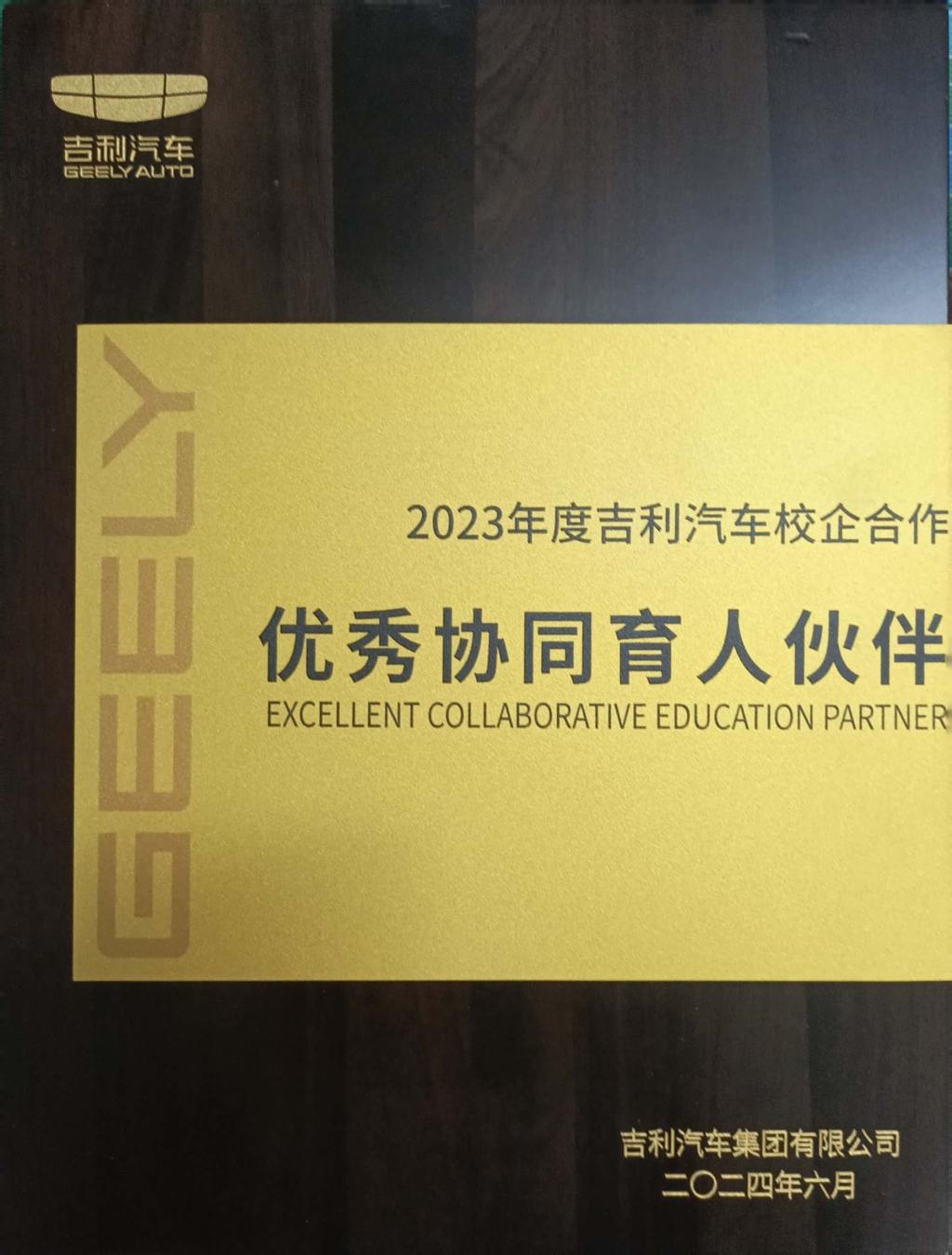 6月28日,2024年吉利汽车集团全球校企合作峰会暨全国产教融合共同体大会在陕西省西安市举行。会上,学院荣获“2023年度吉利汽车校企合作优秀协同育人伙伴”奖。