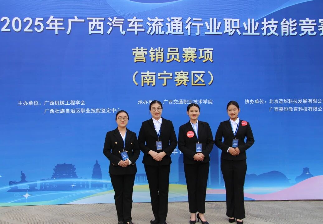 2025年11月21至22日,由广西机械工程学会、广西壮族自治区职业技能鉴定中心主办的2025年广西汽车流通行业营销员(汽车营销方向)职业技能竞赛圆满结束,来自全区16个参赛单位35名参赛选手参与角逐。我院教师陈少丽、陈昌佩,学生莫艳清、梁雅琪分别在职工组与学生组的比赛中斩获两枚金牌与两枚铜牌。