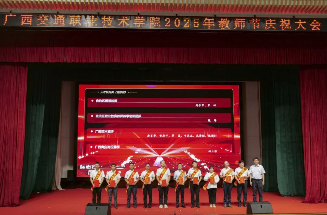 (党委办公室、宣传部 讯 )9月10日,学校在园湖校区大礼堂举行2025年教师节庆祝大会。自治区交通运输厅党组成员、副厅长陈津维,自治区交通运输厅科教处处长韦红教,学校党委书记陈湘如,党委副书记陈海峰,党委副书记、纪委书记麻新桃,副校长黄云奇、戴晓云、邱实出席庆祝大会,全校教职工参加大会。