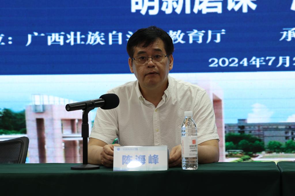 (马克思主义学院 讯)为深入贯彻落实习近平总书记在新时代学校思政课建设推进会上的重要批示精神,守正创新推动思政课建设内涵式发展,7月26日上午,由自治区教育厅主办、广西交通职业技术学院承办的全区高职高专院校思想政治理论课“萌新磨课”第二场活动决赛在南宁举行。学校副校长陈海峰出席开幕式并致辞,南宁师范大学马克思主义学院院长曾令辉等5位区内知名专家学者担任活动评审专家。来自全区30所高职院校的近百名马克思主义学院院长、思政课教师到场观摩。