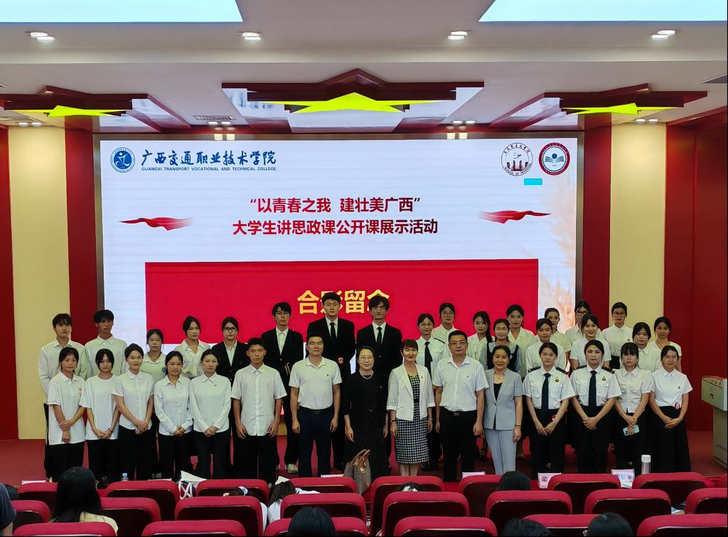 (马克思主义学院  讯  邓锐 朱青穗/文、图)为深入贯彻习近平总书记对学校思政课建设的重要讲话和重要指示精神,不断开创新时代思政教育新局面,6月17日晚上,马克思主义学院、校团委主办,大学生马克思主义学社协办的广西交通职业技术学院2025年大学生讲思政课公开课展示活动决赛在昆仑校区第二学术报告厅C2举行。学校党委副书记、纪委书记麻新桃,党委办公室主任、党委宣传部部长、融媒体中心主任韦耀,党委组织部部长满莹莹,通识教学部党总支书记梁科,马克思主义学院党总支书记、院长周黎华,来自各二级学院推荐的7名学生代表出席并担任此次决赛的评委。马克思主义学院全体教师、各班级学生代表共计150人参加活动。