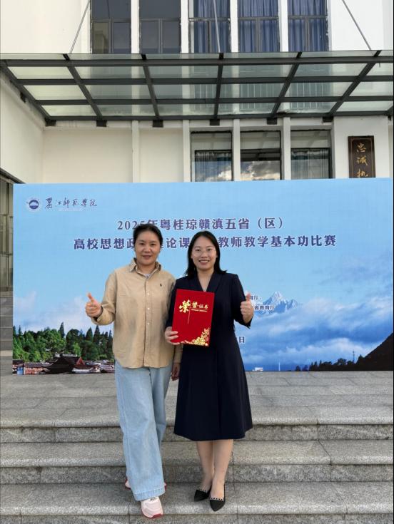 (马克思主义 迅  文/图 朱青穗、周黎华)10月11日至14日,2025年粤桂琼赣滇五省(区)高校思想政治理论课青年教师教学基本功比赛在云南丽江举行,来自五省(区)的40名教师参加比赛,200余名教师观摩比赛。经过激烈角逐,我校教师梁丽圆在比赛中表现优异,荣获高职组二等奖。