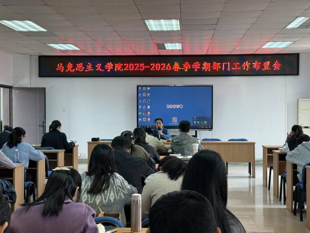 (马克思主义学院 讯 梁丽圆/文、图)为深入贯彻学校工作部署,锚定“双高”建设目标,统筹推进新学期各项工作提质增效,3月4日,马克思主义学院在昆仑校区副楼315会议室召开了2025-2026学年春季学期开学工作布置会,会议由院长周黎华主持,全体思政课教师参加。