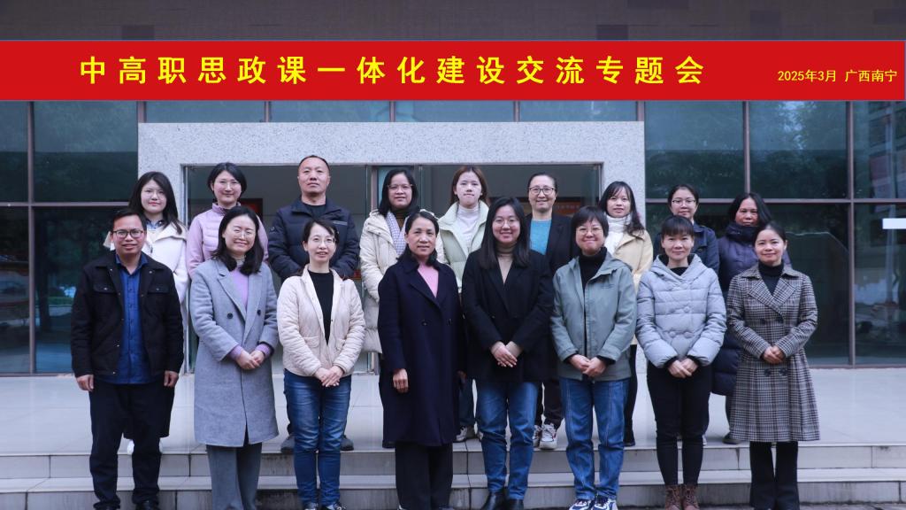 会议尾声,付漓漓副院长指出,此次交流为两校思政课一体化建设注入新动力,未来希望建立常态化合作机制,通过联合教研、课题共研等方式深化协同。覃佩娟副校长表示,南宁市第一职业技术学校将积极对接对口高职院校资源,共同打造中高职思政课一体化“样板工程”。会后,全体与会人员在南宁市第一职业技术学校五象校区办公楼前合影留念。
