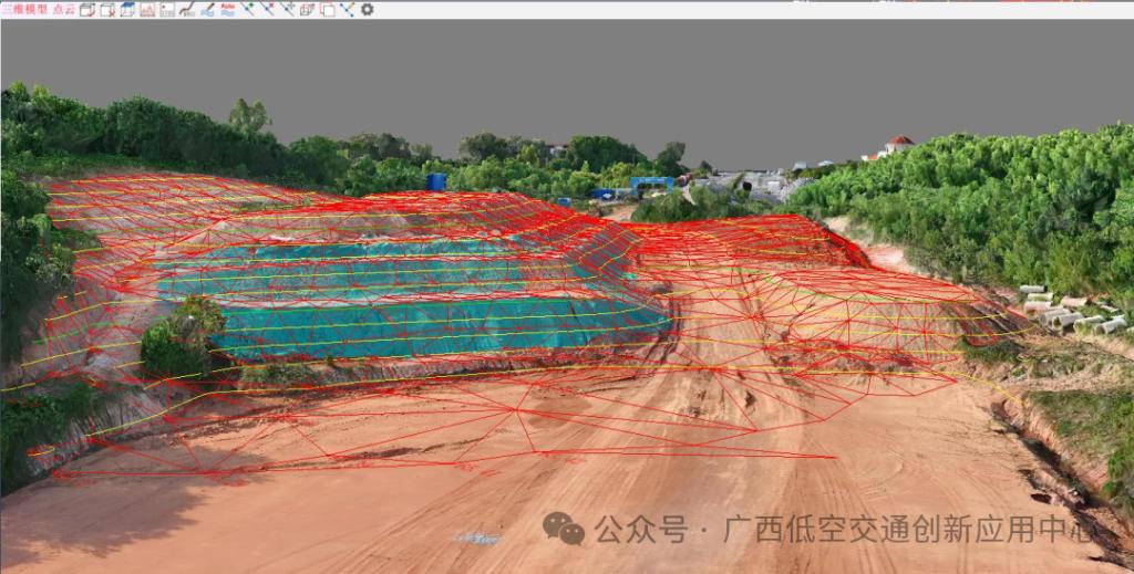 在广西全力打造低空经济高地的浪潮中,高校科研力量与企业实践需求正加速融合。广西交通职业技术学院长远谋划布局,自 2016 年起选派教师学习无人机测绘等相关应用,积累了无人机测绘技术经验。并顺应工程建设等市场新需求在 2024 年组建了低空技术团队,为学校、广西低空交通创新应用中心(以下简称“中心”)及行业围绕教学、科研、项目实践等方向展开了“低空+N 种场景应用”实践研究。近日,低空技术团队数位骨干教师携手本地施工企业,将无人机高精度航测技术深度应用于在建的市政道路工程项目,在土石方计算、高大边坡复核、用地红线侵限复核、征地面积复核等关键环节实现突破,用科技为项目精细化管理注入新动能。