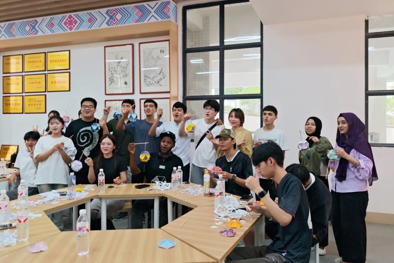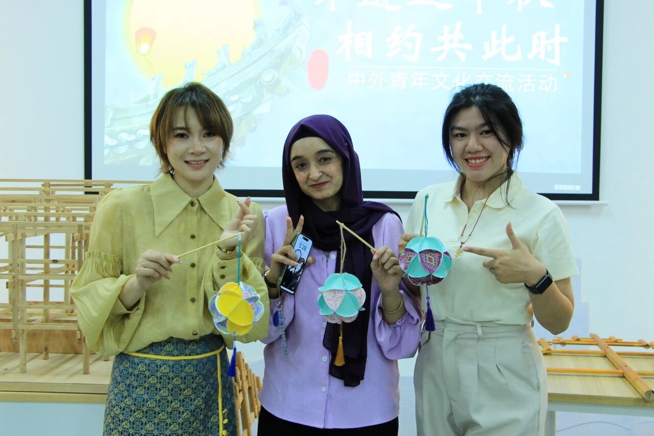 2025年9月30日下午,由广西交通职业技术学院东盟国际学院主办、智能建造与低空技术学院承办的“非遗迎中秋 相约共此时”中外青年文化交流活动在数智建造国际产教融合基地中的国际学生文化交流中心成功举办。来自东盟多国的30名留学生与学院20名师生代表齐聚一堂,在中秋佳节来临之际,通过传统木构营造技艺体验、绣球花灯制作等互动活动,让师生感受非遗魅力,共迎团圆佳节。