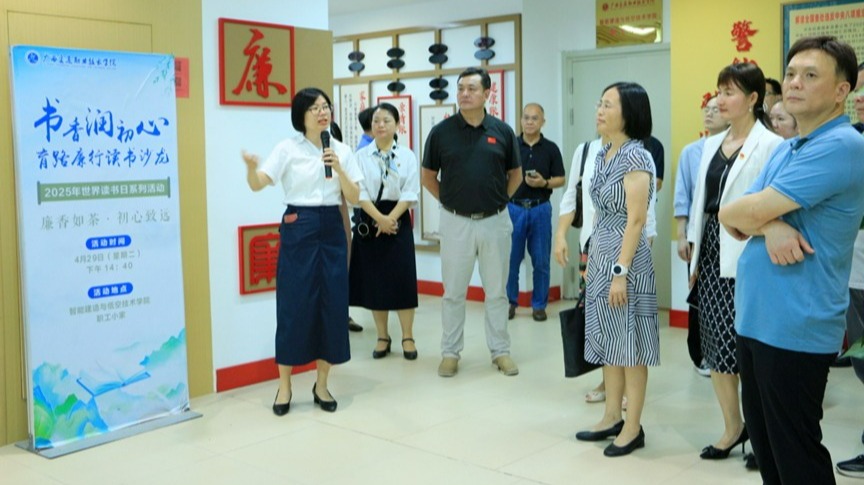 2025年10月10日下午,全区全面深化清廉学校建设工作现场推进会高校观摩组一行莅临我校开展现场观摩。作为学校廉洁文化教育地图上的重要站点,我院荣幸承接了此次观摩接待任务,向观摩组一行集中展示了我院将专业教育与廉洁文化教育有机融合的最新成果。学校党委书记陈湘如,党委副书记、纪委书记麻新桃陪同观摩。