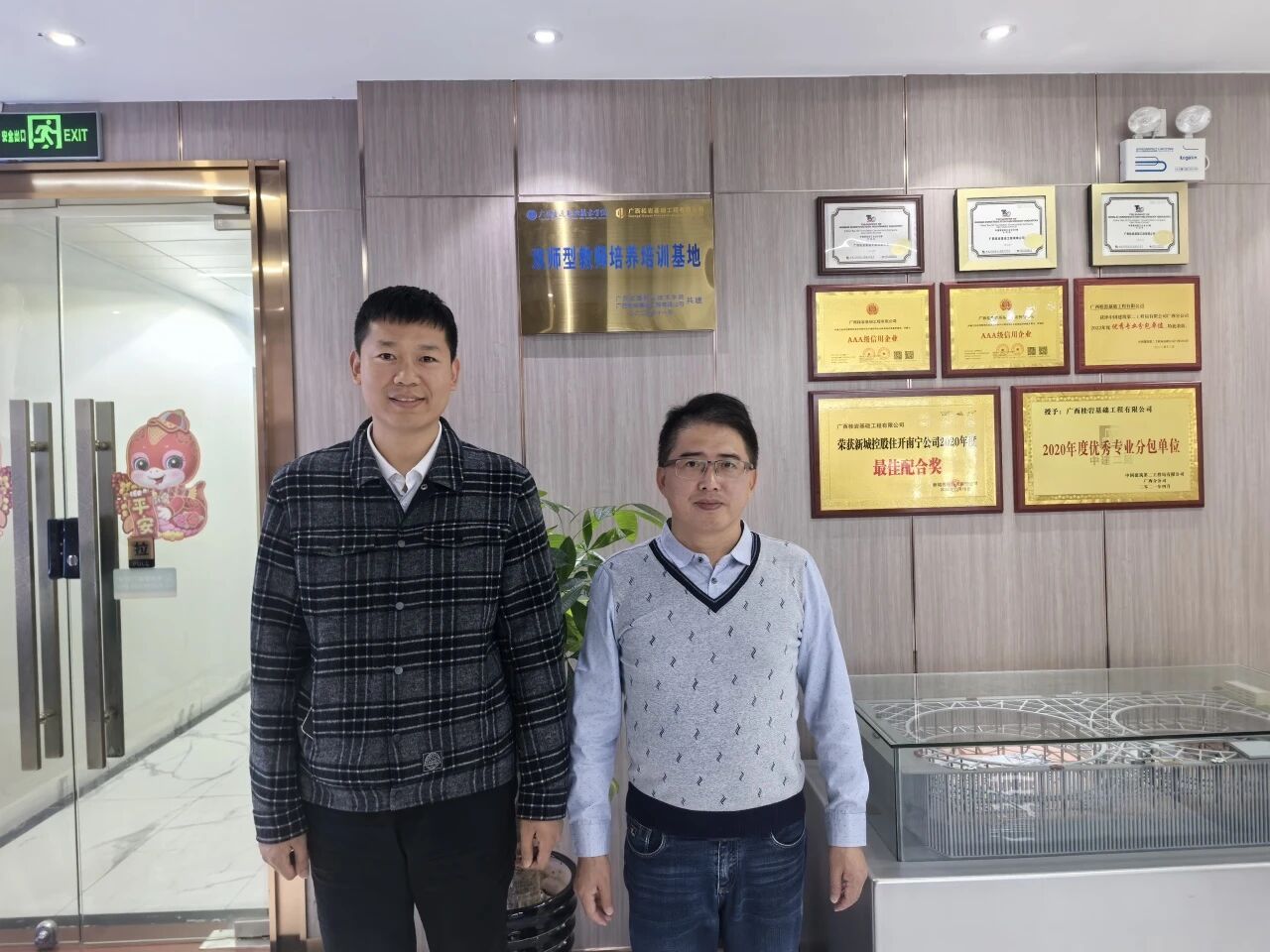 在广西桂岩基础工程有限公司负责人明守成的陪同下,调研团队对这家在基础施工领域深耕二十余年的企业进行了深入了解。面对行业调整,桂岩公司凭借“重资产、专技术”的核心竞争力与品牌优势,在广西及广东多地重大项目中屡次斩获佳绩,实现逆势增长。