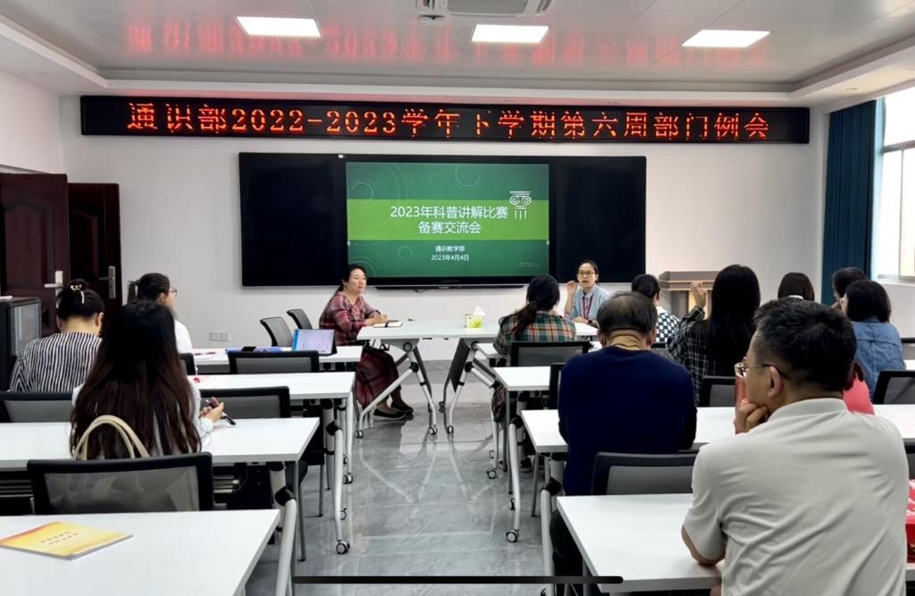 (通识教学部 讯 谢昕言/文)“学校科普讲解大赛是展现我校教师综合素质的一个重要窗口,作为从事通识课程教学一线的老师,我们通识部的青年老师们应该发挥自身专业优势和专长,将科普与立德树人的课程思政建设有机结合,积极参与科普事业,通过竞赛提升自身综合能力,为营造交通特色鲜明的校园文化贡献一份力量”通识教学部梁东颖主任在部门2023年科普讲解大赛备赛交流会上如是强调。