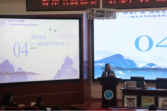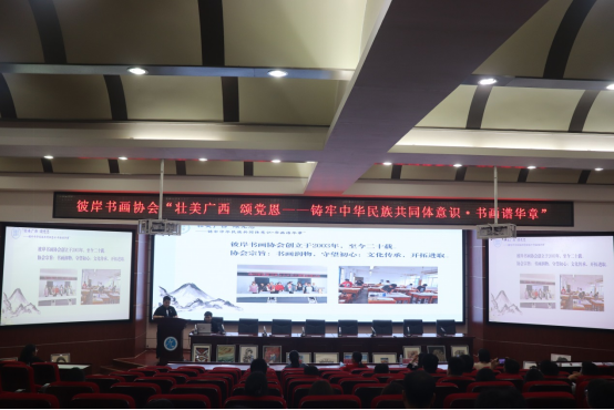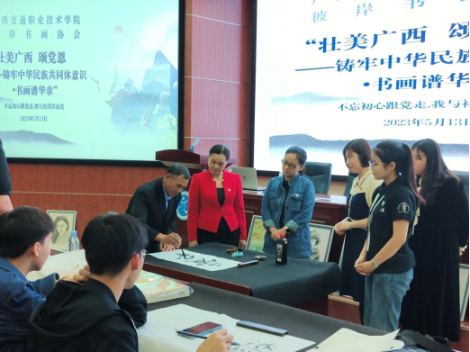 (通识教学部党总支 讯 潘媛媛/文)翰墨飘香,丹青溢彩。通识教学部党总支“壮美广西 颂党恩——铸牢中华民族共同体意识 书画谱华章”主题书画作品展于2023年5月13日上午在昆仑校区第一学术报告厅开幕。出席开幕式嘉宾有通识教学部党总支刘爱英书记,总支副书记、通识教学部主任梁东颖,彼岸书画协会历任指导教师等。