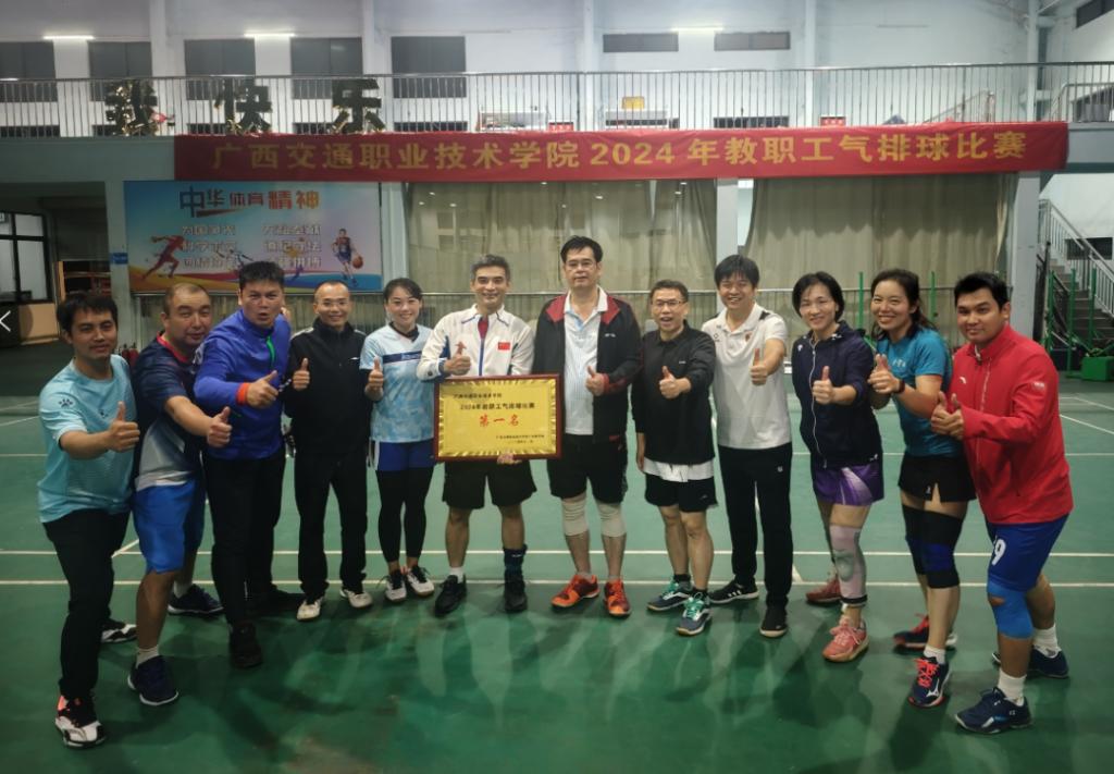 在刚刚结束的广西交通职业技术学院2024年教职工气排球比赛中,经过多轮激烈角逐,我部队员凭借团队拼搏精神和顽强的毅力,一路过关斩将,勇夺冠军!