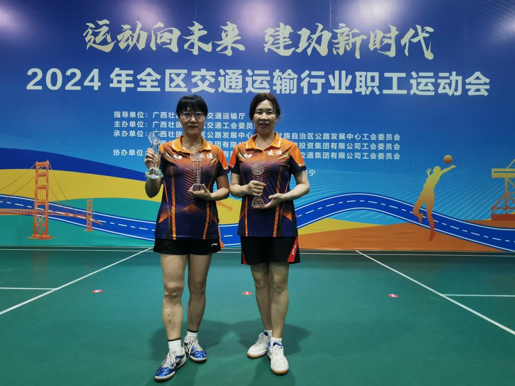 (工会讯 龚春鸣/文、图) 5月26日下午,“运动向未来 建功新时代”2024年全区交通运输行业职工运动会在南宁李宁体育园落下帷幕。我校乒乓球老将王秀丽、丁永灿不畏强手,稳定发挥,经过激烈角逐,最终斩获女子乒乓球双打冠军。供稿单位审核:黎 明一审一校:兰东宇二审二校:张丽梅三审三校:韦曙