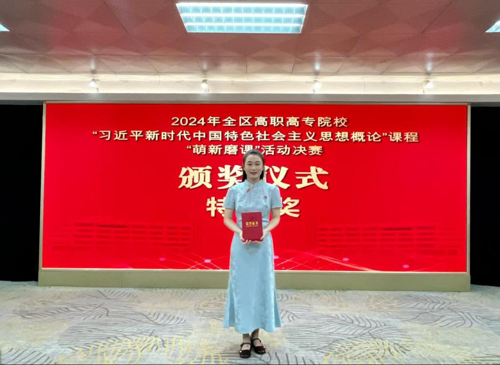 (马克思主义学院 讯 苏喜婷、朱青穗/文、图)11月9日上午,2024年全区高职高专院校“习近平新时代中国特色社会主义思想概论”课程“萌新磨课”活动决赛在南宁举办,我校马克思主义学院青年教师苏喜婷喜获特等奖。此次活动由自治区教育厅主办、广西水利电力职业技术学院承办,各高校积极推荐青年思政课教师参加区赛,最终10名选手入围决赛。来自全区30所高职院校的近百名马克思主义学院院长、思政课教师到场观摩。马克思主义...