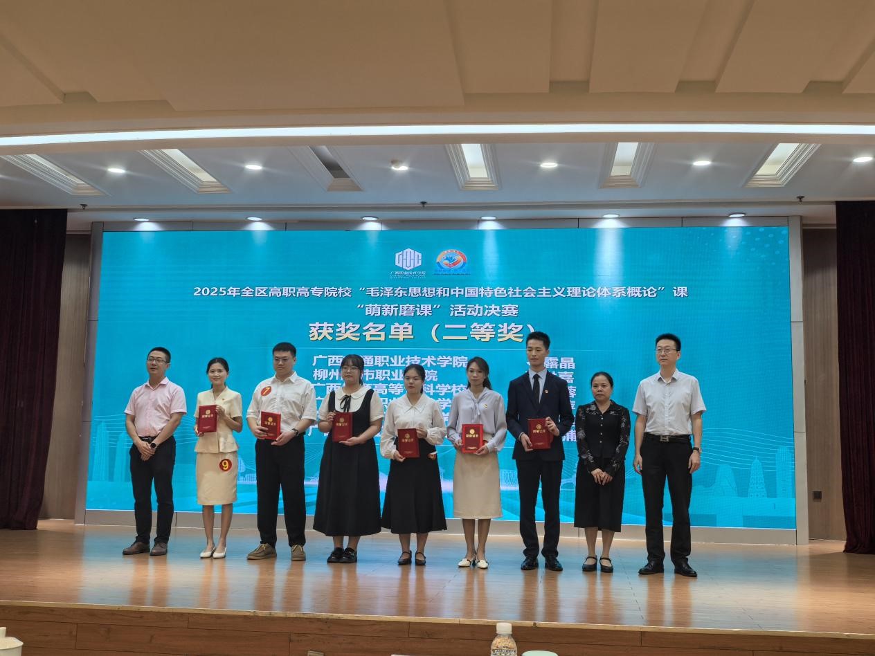 (马克思主义学院 讯 苏喜婷 岑露晶/文、图)日前,2025年全区高职高专院校“毛泽东思想和中国特色社会主义理论体系概论”课程“萌新磨课”活动决赛在南宁圆满落幕。我校马克思主义学院青年教师岑露晶荣获本次比赛二等奖。我校马克思主义学院青年教师陈露晶获二等奖本次比赛由广西高等教育学会高校思想政治教育研究专业委员会主办,广西职业技术学院承办。活动分为校内初选、线上复选、现场展示三个环节。经初选及复选,全区共...
