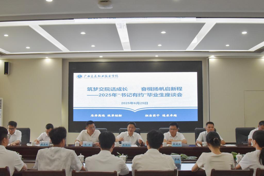 (党委办公室 讯 郑枢/文、图)“要传承交院精神,不管遇到什么困难和挫折,都要有一颗攻坚克难、积极进取之心,真诚以待、勤劳敬业、专注专业,才能早日成为可堪大用、能担重任的栋梁之材。”学校党委书记陈湘如真切勉励2025届毕业生代表。近日,“书记有约”毕业生专题座谈会在我校园湖校区图书馆四楼会议室召开,来自各二级学院的14名2025届毕业生代表参加交流。副校长戴晓云出席活动。座谈交流活动现场气氛热烈,发言踊跃。...