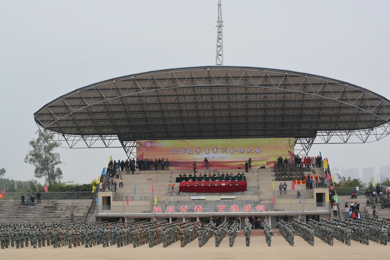 【学工团委讯】我院隆重举行2016级学生军训会操大会
