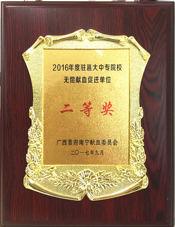 【学工团委讯】我院荣获2016年度驻邕大中专院校无偿献血促进单位二等奖