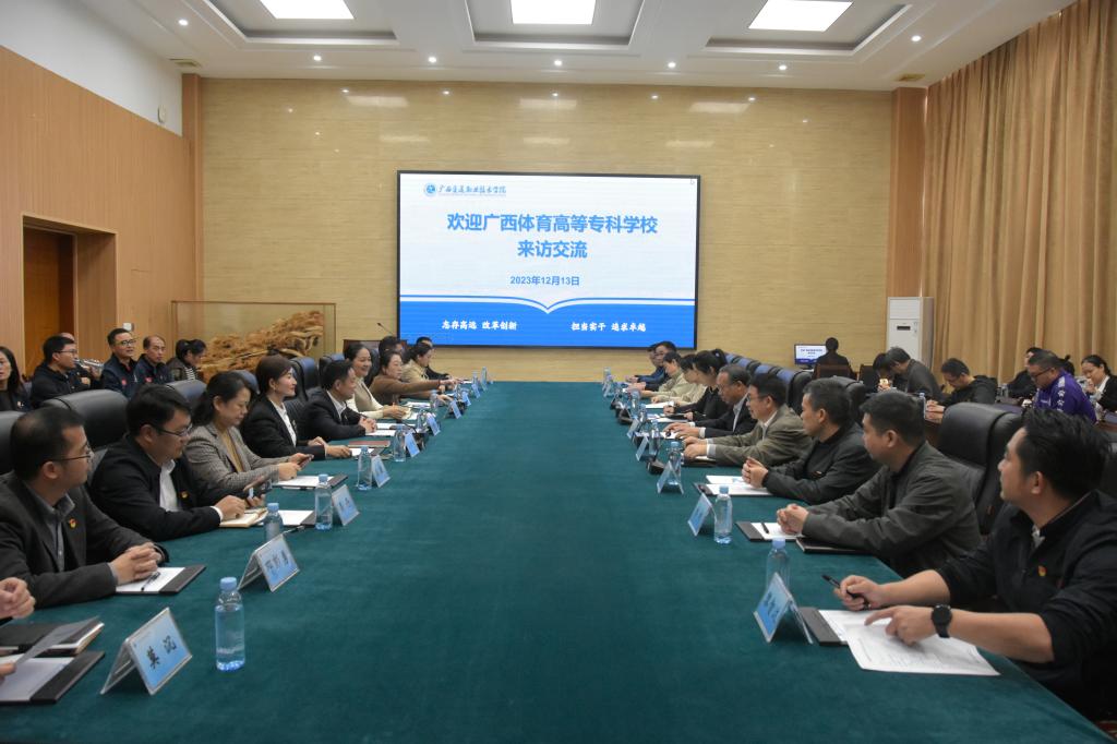 (党委组织部 讯 黄月芬/文 宁俊源/图)12月13日,广西体育高等专科学校党委书记杨昌鹏率队一行39人到我校开展党建工作交流,学校党委书记陈湘如、党委副书记莫海燕、纪委书记麻新桃接待到访一行,党委组织部、相关学院党组织负责人参加了交流座谈会。座谈会由学校党委书记陈湘如主持。座谈会现场座谈会上,陈湘如书记代表学校对杨昌鹏书记一行表示热烈欢迎,简要介绍了学校党建工作的基本情况,他指出,学校以高质量党建引领和...