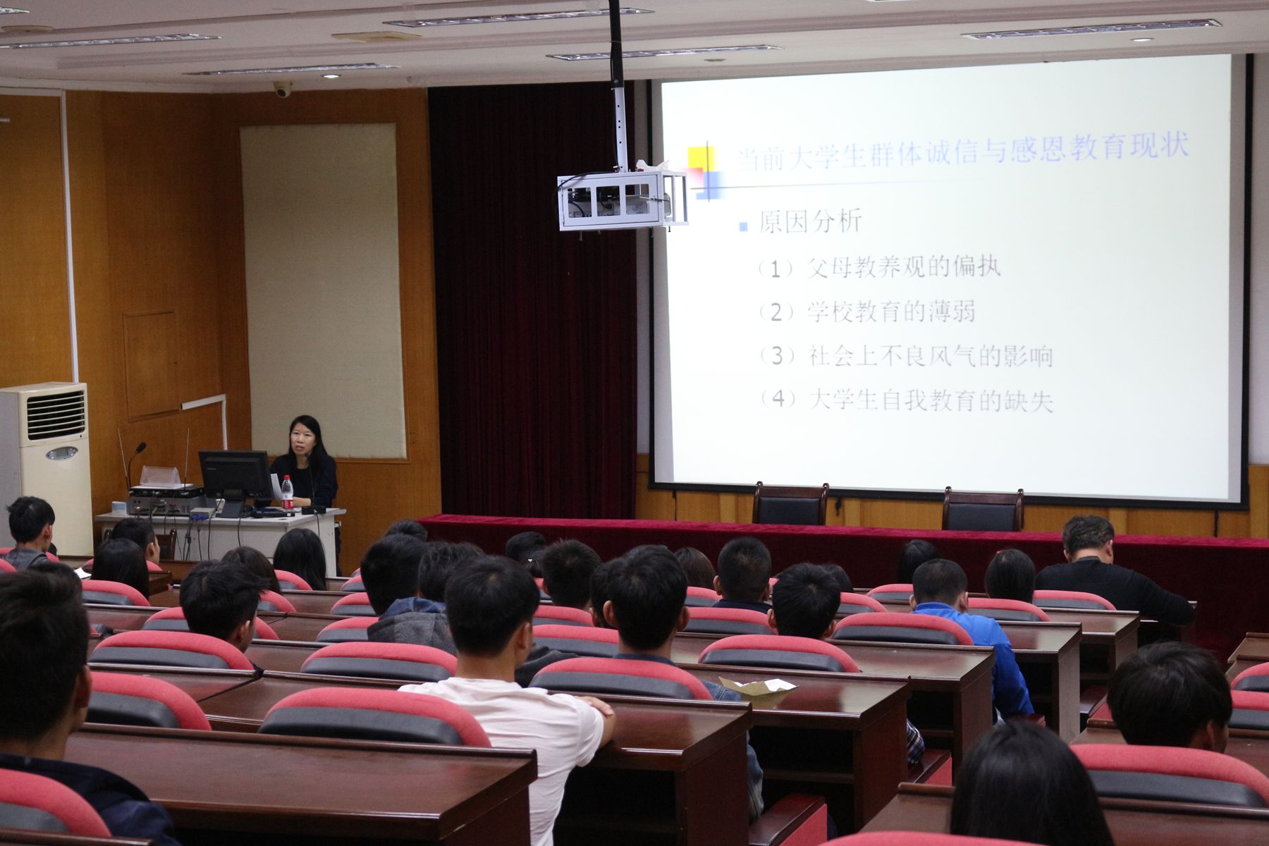 (学生工作处 团委 滕茵/文)为了进一步培养大学生励志自强、诚信感恩的良好品质,12月20日,一场主题为“满怀感恩,诚信做人”的讲座在学院园湖校区701报告厅召开,来自信息工程系的140多名同学聆...