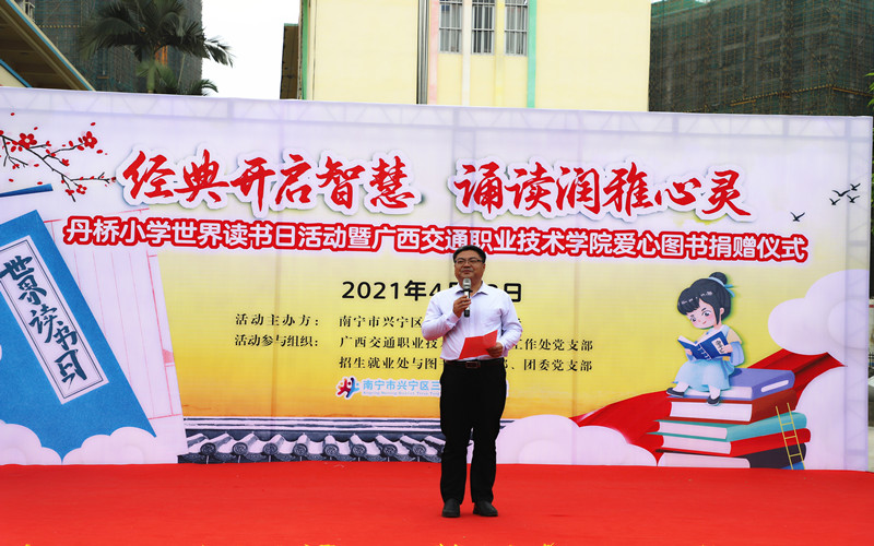 (学生工作处党支部 讯 ) “独立寒秋,湘江北去......”4月23日,我校前往丹桥小学开展“学党史 强信念 跟党走”主题党日活动暨“经典开启智慧 诵读润雅心灵”爱心图书捐赠仪式。 会上,学生工作部(...