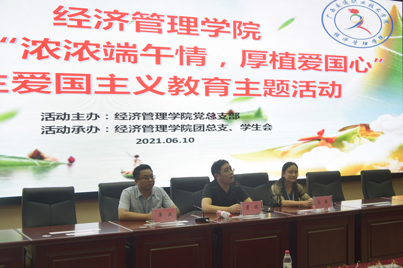 (经济管理学院 讯 韦珍妮/文、图)近日,经济管理学院党总支部主办“浓浓端午情 厚植爱国心”师生爱国主义主题教育活动,组织开展了“弘扬传统文化,传承爱国精神”主题党课、“创作爱国诗歌,抒发爱国情感”现场诗...