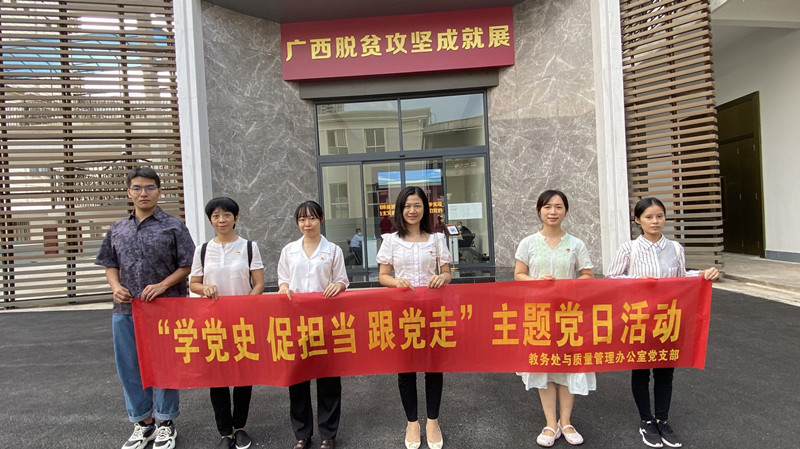 (教务处与质量办党支部 讯 覃晓涓/文)为深入开展党史学习教育,增强广大党员的党性意识,学习脱贫攻坚精神,近日,教务处与质量办党支部前往广西展览馆开展“学党史,促担当,跟党走”主题党日活动。 在展厅内...