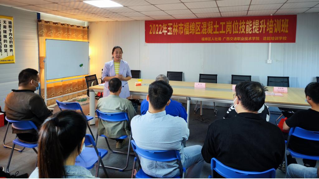 为服务区域经济发展,加强企业职工技能提升,发挥职业院校开展技术技能培训优势,11月7日上午,由广西交通职业技术学院举办的玉林市福绵区混凝土工岗位技能提升培训班在玉林市福绵区开班。玉林市福绵区人社局副局长陈坚、广西交通职业技术学院继续教育学院院长梁金江、玉林市汇港混凝土公司经理邹金城出席开班仪式并作发言。开班典礼开班典礼参加本次混凝土工岗位技能提升培训班的43名学员均是来自玉林市汇港混凝土公司的技术骨...