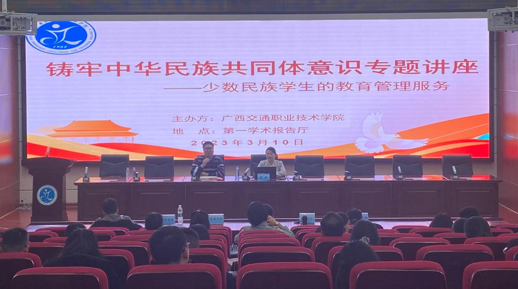3月10日,学校在昆仑校区第一学术报告厅开展铸牢中华民族共同体意识专题讲座。各二级学院分管学生工作副书记、学工办主任、辅导员共100余人参加活动。讲座现场活动中,广西民族大学周婷博士作《对高校开展铸牢中华民族共同体意识教育路径的思考》专题讲座。周博士从广西世居民族概述、少数民族学生的教育管理服务、铸牢辅导员工作室的建设历程及路径三个方面,并结合自身十几年的辅导员工作经历,全面系统、深入浅出地阐释在高...