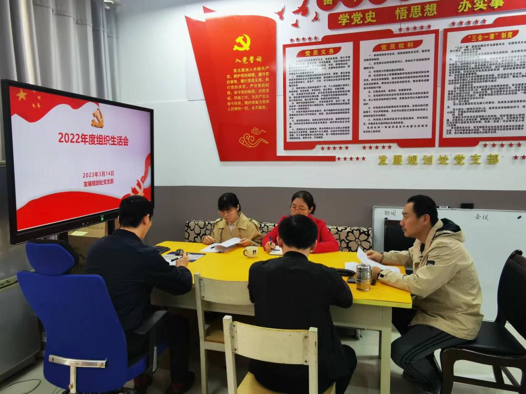 3月14日,发展规划处党支部召开2022年度组织生活会。会前,支部全体党员通过采取集体研讨、个人自学的方式,学习了党的二十大报告和党章等文件精神。在切实打牢思想基础的同时,全体党员对照检视内容,深入查摆问题,认真梳理问题清单,保证了组织生活会的顺利开展。会上,首先由党支部书记张佺对支部2022年工作开展情况进行总结,并对照党章规定的支部职责,对照完成巡视巡察以及上年度组织生活会查摆问题的整改情况,从政治功...