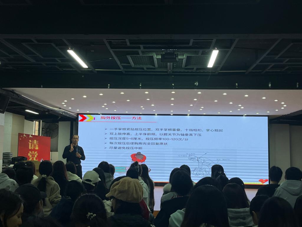 (后勤保障服务中心 讯 黄省/文、图)近日,我校在昆仑校区举办第二期半自动体外除颤器(AED)与心肺复苏(CPR)专项培训,约120名师生参加培训。培训中,广西红十字会救护培训中心苏振涛老师通过系统讲解心脏骤停的“黄金四分钟”救援概念、AED(自动体外除颤器)在急救中的关键作用,让参训人员建立清晰的救援知识框架。授课现场在实操环节,师生分组利用模拟教具进行练习,完整模拟从发现患者到使用设备的整个急救流程。参训...