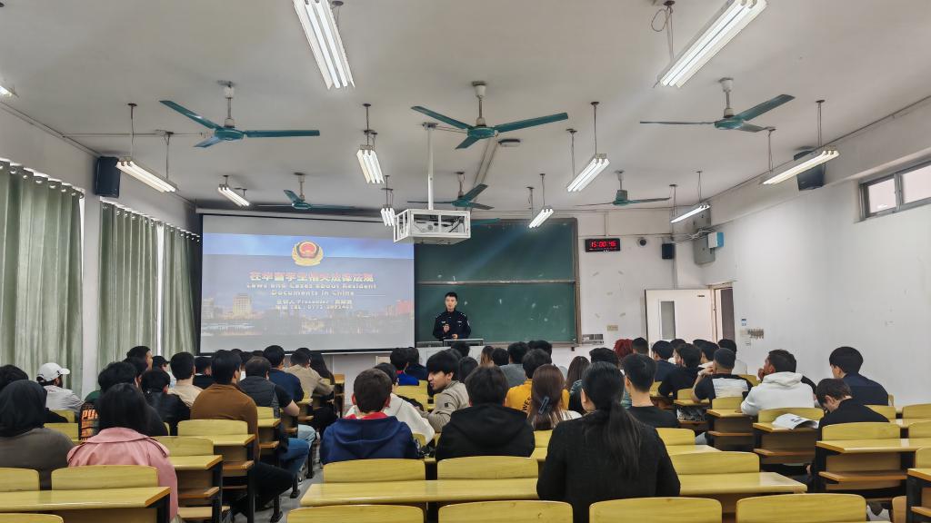 (东盟国际学院 讯 文静琦/文)近日,学校邀请南宁市公安局出入境管理支队吴雨宸警官入校,为2025级国际学生开展《在华留学生相关法律法规》专题讲座。东盟国际学院副院长严丽一同参加学习。讲座以“理论+案例”相结合的方式展开,吴警官首先围绕基础法律知识模块进行系统讲解,重点涵盖留学生签证、居留许可、临时住宿登记、护照丢失证明等国际学生在华居留的核心环节。在案例讲解部分,吴雨宸警官用生动形象的典型案例,为大...