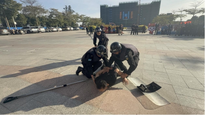 (后勤保障服务中心 讯 高长亮/文、图)为提升校园应对突发暴力事件的应急联动与处置能力,近日,后勤保障服务中心(保卫处)联合三塘派出所、物业安保人员在昆仑校区开展反恐防暴演练。演练现场,三塘派出所民警现场讲解盾牌、防暴钢叉、橡胶棍等器械的使用方法、攻防技巧及注意事项。模拟实战环节中,应急防暴组、疏散组在民警指导下各司其职、协同配合,攻防动作规范实用,处置高效,充分展现了校园安保队伍的专业素养。供稿...