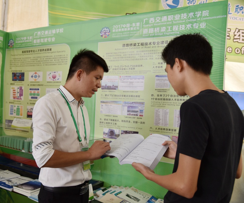 (路桥工程系 讯 杨静/文 梁友佳/图) 近日, 2017中国—东盟职业教育联展暨论坛在南宁市中关村创新示范基地举行。路桥工程系道路桥梁工程技术专业校园教学工场设计作品成功入选参展,受到国内外贵宾的关...