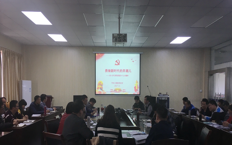 (汽车工程系 讯 吴丹、梁业灿/文 梁业灿/图)近日,汽车工程系党总支组织全系教师认真学习党的十九大精神。汽车工程系党总支书记黄云奇作题为《勇做新时代弄潮儿——深入学习贯彻党的十九大精神》的专题报告。 ...