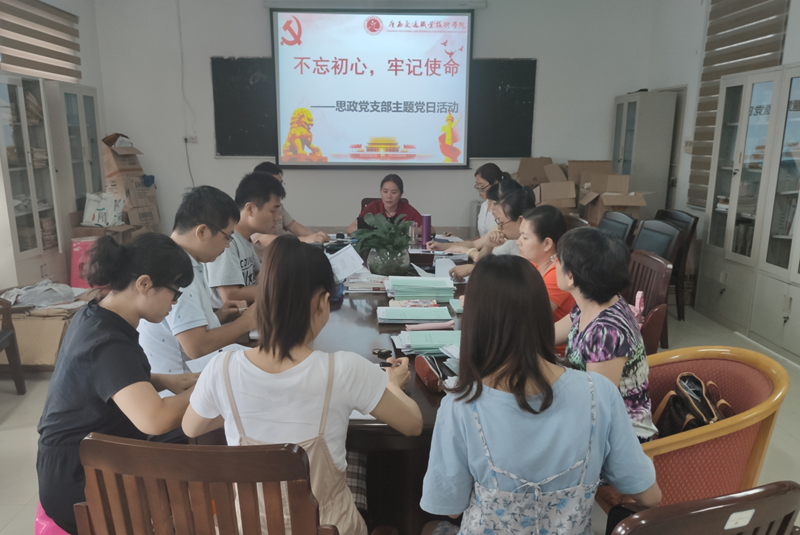 (思政党支部 讯 杨中陶/文、图)近日,思政党支部在北区505会议室开展“不忘初心、牢记使命”主题党日活动。思政部全体教师参加了活动。 活动中,思政党支部书记周黎华同志带领全体教师学习了习近平总书记在“不忘...