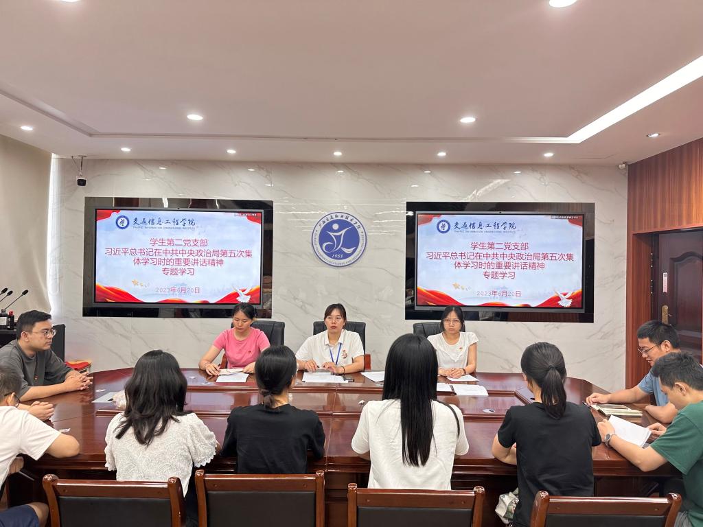 (交通信息工程学院讯 周玉霞/文、图)6月20日,交通信息工程学院学生第二党支部在园湖校区707开展《习近平总书记在中共中央政治局第五次集体学习时的重要讲话精神》专题学习,学习会由支部书记汤细腊领学,支部全体教师党员参会。