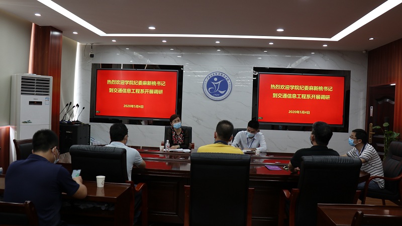 调研过程中,麻新桃书记与交通信息工程系领导班子、总支委员进行了座谈。座谈会上,系党总支杨顺韬书记就系部发展概况、师资队伍、学生规模、人才培养等方面取得的成绩及面临的问题向麻书记作了简要的介绍。组织委员罗俊懿老师向麻书记汇报了党总支的党建现状、品牌建设、下一阶段工作思路和措施。