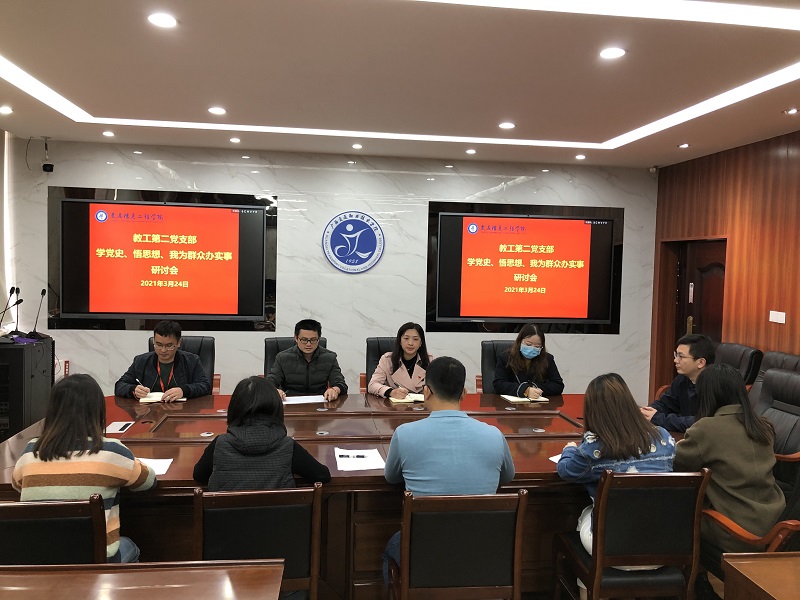 (交通信息工程学院 讯 邬佩君/文、孙坚/图)2021年是“十四五”规划开局之年,新的征程已然开启,为助力学校对标“双高”、争创职业本科,不断推进立德树人水平,树立良好的对外形象,3月25日,交通信息工程学院教工第二党支部在园湖校区信息大楼707室召开“学党史、悟思想、我为群众办实事”研讨会。