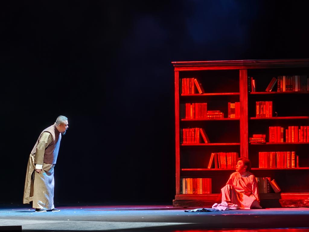 演出开始时,中国戏曲诗化、唯美、大写意的美学在舞台呈现,低吟浅唱的吴侬软语让观众仿佛穿越时空,回到了那个风雨飘摇的旧中国,体悟当时青年知识分子的救国救民情怀。