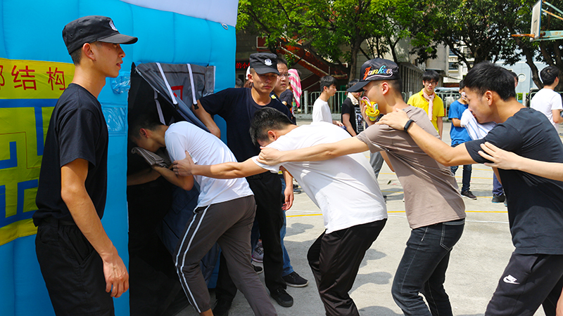 演练活动开始前,莫跃宁处长做了动员讲话,他强调了消防安全烟道逃生疏散演练的重要性和必要性,希望师生们要把演练当成真实火灾现场,万一遇到真实的情况,就不会惊慌失措。随后,后勤保卫处丘志坚老师就烟道逃生的具体要求和注意事项进行了讲解,并宣布模拟烟道逃生演练开始。师生代表在后勤保卫处工作人员的指导下,用毛巾捂住口鼻,弯腰前进,有序、快速地穿过充满烟雾的“火屋”,顺利逃生。
