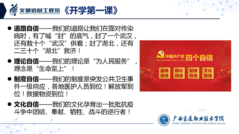 (交通信息工程系 宣委/文/图)3月11日,为做好新冠肺炎疫情防控工作、打赢疫情防控阻击战,李文勇院长以 “战疫情,同领悟,共成长——思政课战疫小课堂”为主题,给全院师生讲授了思政战“疫”小课堂第二课。孙坚老...