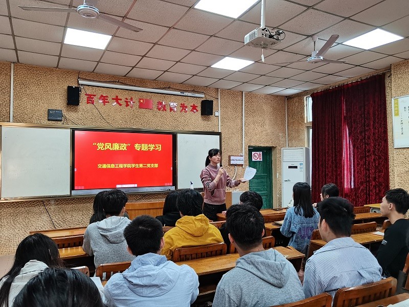 (交通信息工程学院 讯 覃宏山/文、图)为进一步加强党风廉政建设,提升党员廉洁自律意识,营造风清气正的学习工作环境,2021年12月17日,交通信息工程学院学生第二党支部在相思湖校区多媒体二教室开展“党风廉...