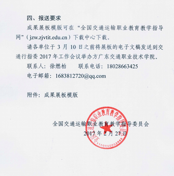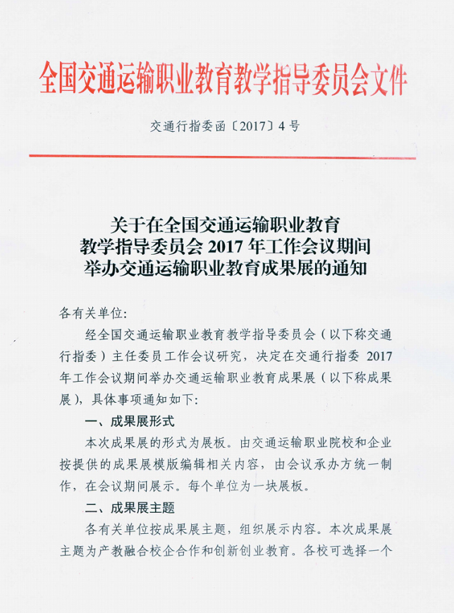 关于举办交通运输职业教育成果展的通知 交通行指委函[2017]4号